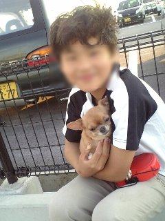 長男、ご愛犬のリボンちゃん抱っこして嬉しそう(*⌒▽⌒*)