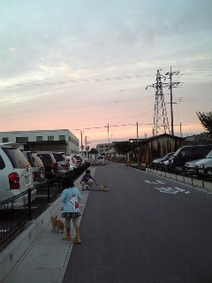 帰ってきて、夕飯まで少し時間が有るから、長男の中学校への自転車通学の練習に大きな自転車練習がてら、セーラと飛鳥を連れてお散歩に♪