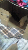 サン箱へ入れてあげると、如月も一緒に離乳食食べてるの。