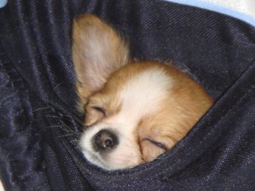 息子のポケットで寝るみかんの画像をGET!