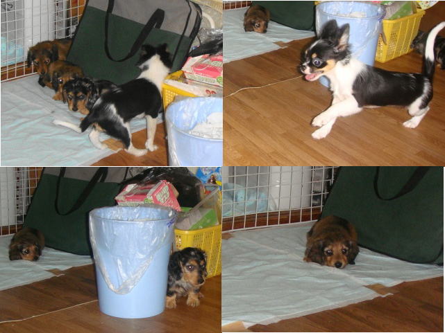 で、その傍らで、子犬たちは元気一杯走り回ってるし・・。